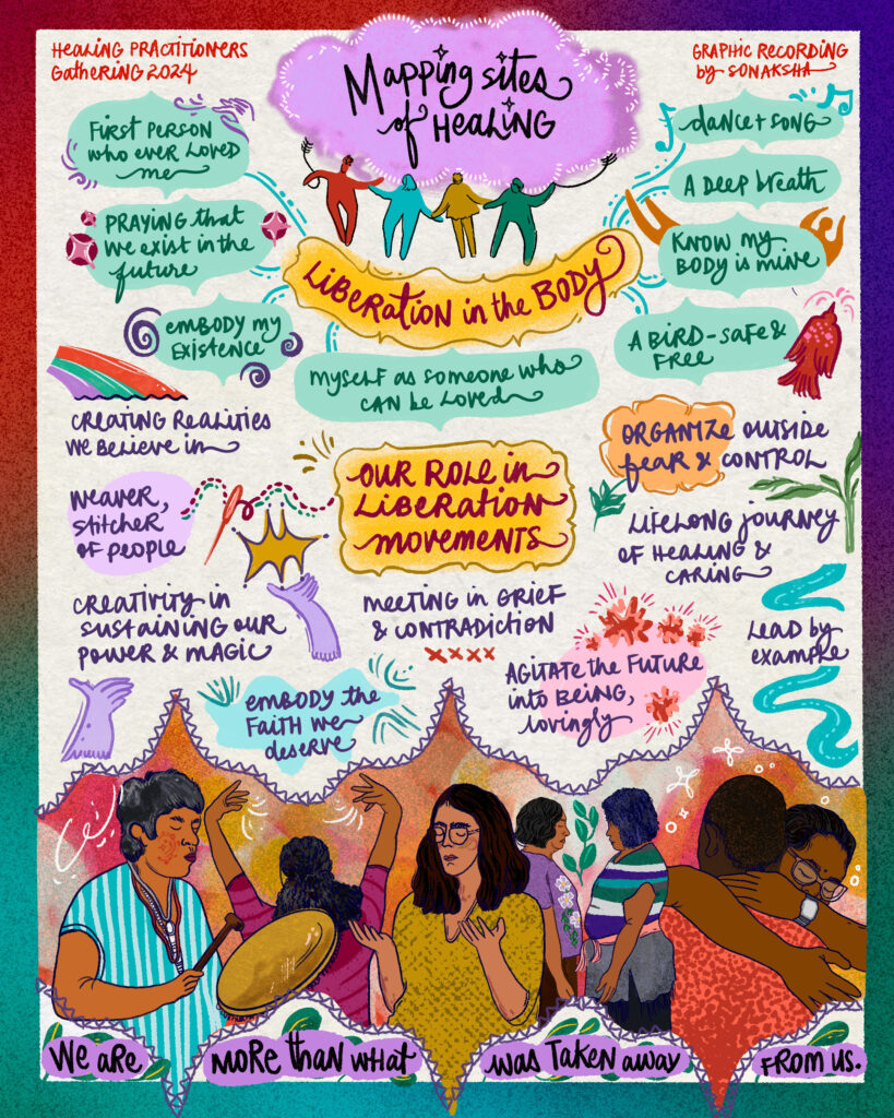 Nuestra intención fue seguir posibilitando espacios en donde las conversaciones sobre la importancia de colocar el cuidado al centro, sean una realidad. En donde puedan nombrarse y reconocerse estos conocimientos, que desde siempre han sostenido los movimientos feministas. Desde nuestra región, acudieron sanadoraes y curadoras que compartieron sus visiones indígenas, negras y cimarronas.